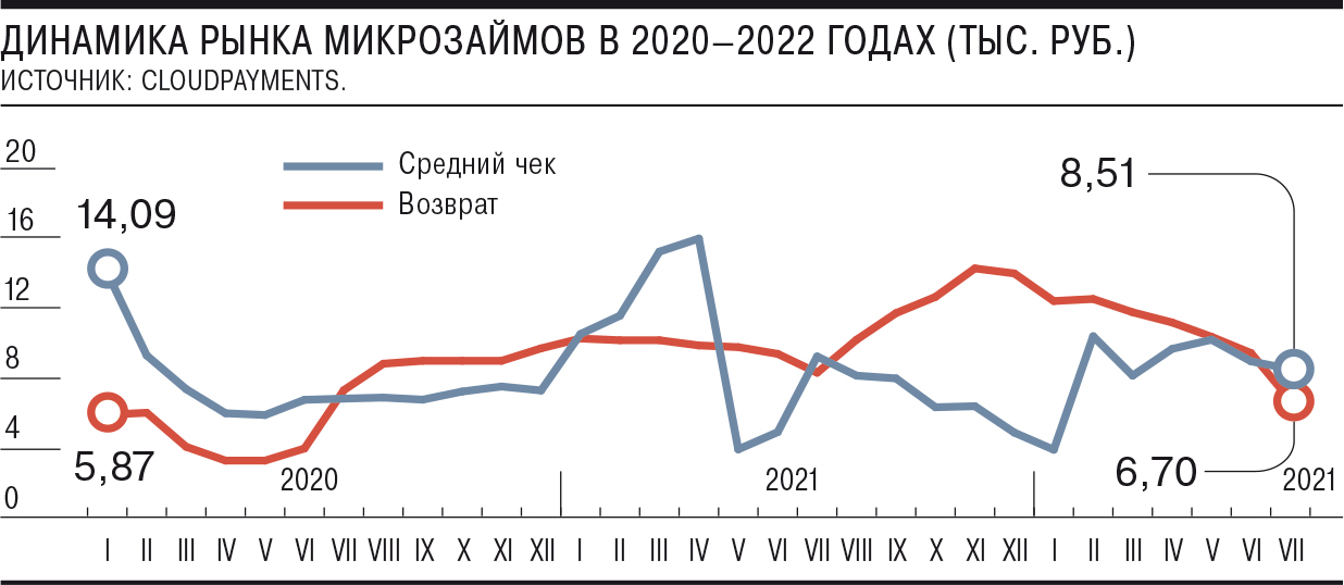 Участники микрофинансового рынка наблюдают значительное снижение суммы возврата займов В июле она достигла 67 тыс руб минимального значения с весны 2020 года С одной стороны снижаются и размеры займов но влияет и сезон отпусков когда заемщики откладывают погашение долга Пока уровень просрочки в сегменте находится на приемлемом уровне Но...